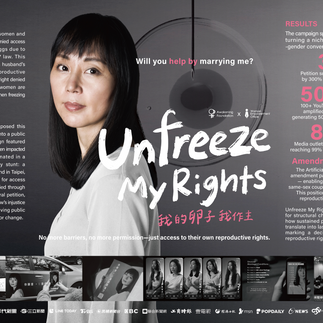 電通創意今年展現了強大的統治力。首先是在競爭最激烈的 Creative Strategy(創意策略) 類別,台灣電通的作品 《UNFREEZE MY RIGHTS》(我的卵子我作主) 摘下銀獎。這件作品早在 2024 年 4A 創意獎 就嶄露頭角,榮獲「其他永續及 SDGs 行銷創意獎」銀獎與「最佳整合行銷溝通」銀獎。其對社會體制的挑戰與轉化,展現了頂尖的 Strategic Thinking,成功打動了 ADFEST 策略類評審。